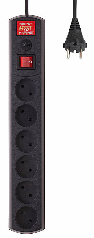 Сетевой фильтр Most LR 1.7м (6 розеток) черный (коробка)