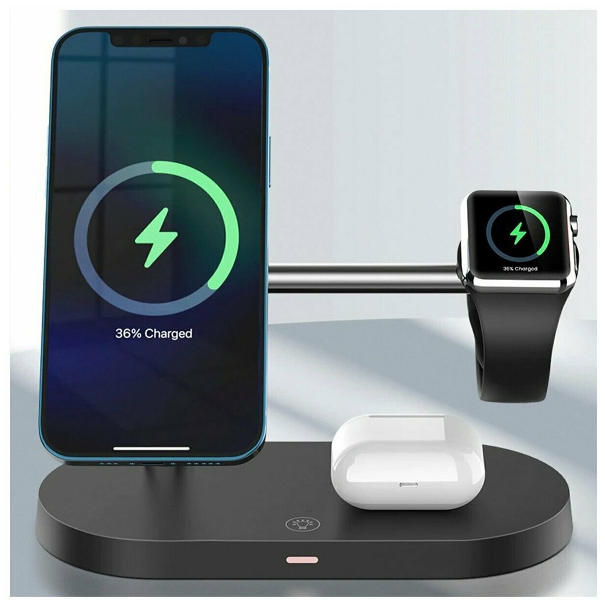 Купить Док Станция 5 в 1 для телефонов iPhone, Samsung, часов Apple Watch, наушников AirPods / Беспроводная Зарядка для Айфона, Самсунга, Эпл Вотч и Аир Подс / Черная