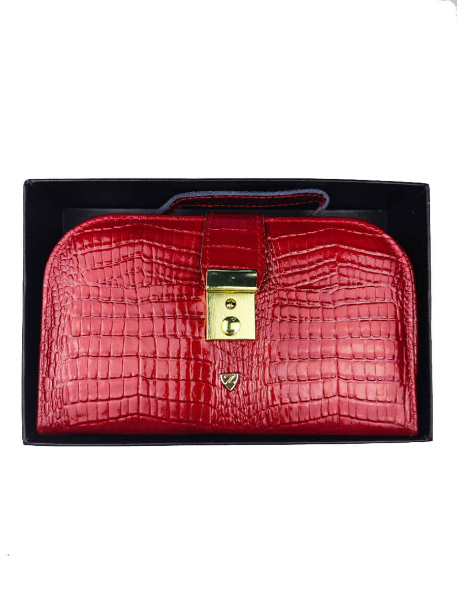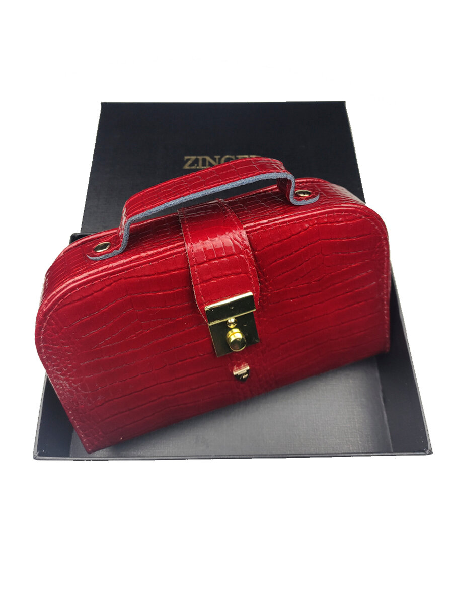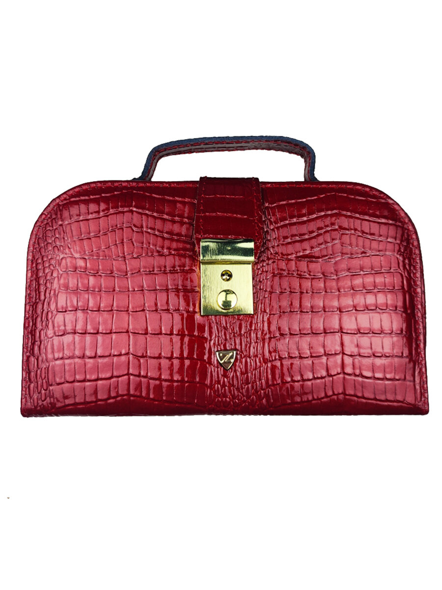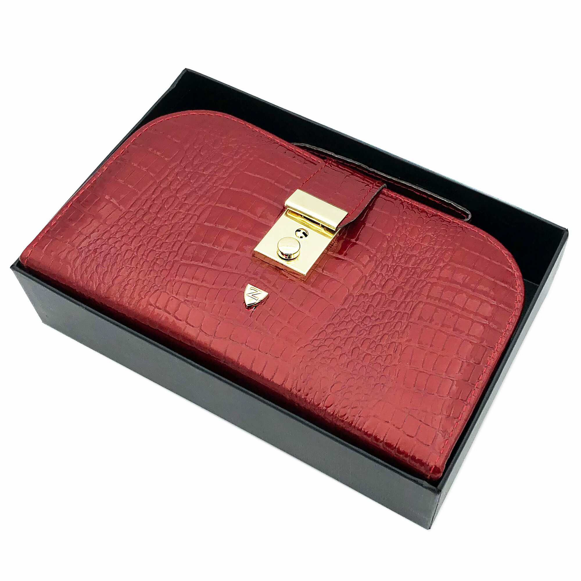 Маникюрный набор Zinger MS-1101-BG, позолоченный/темно-красный крокодил, 12 предметов