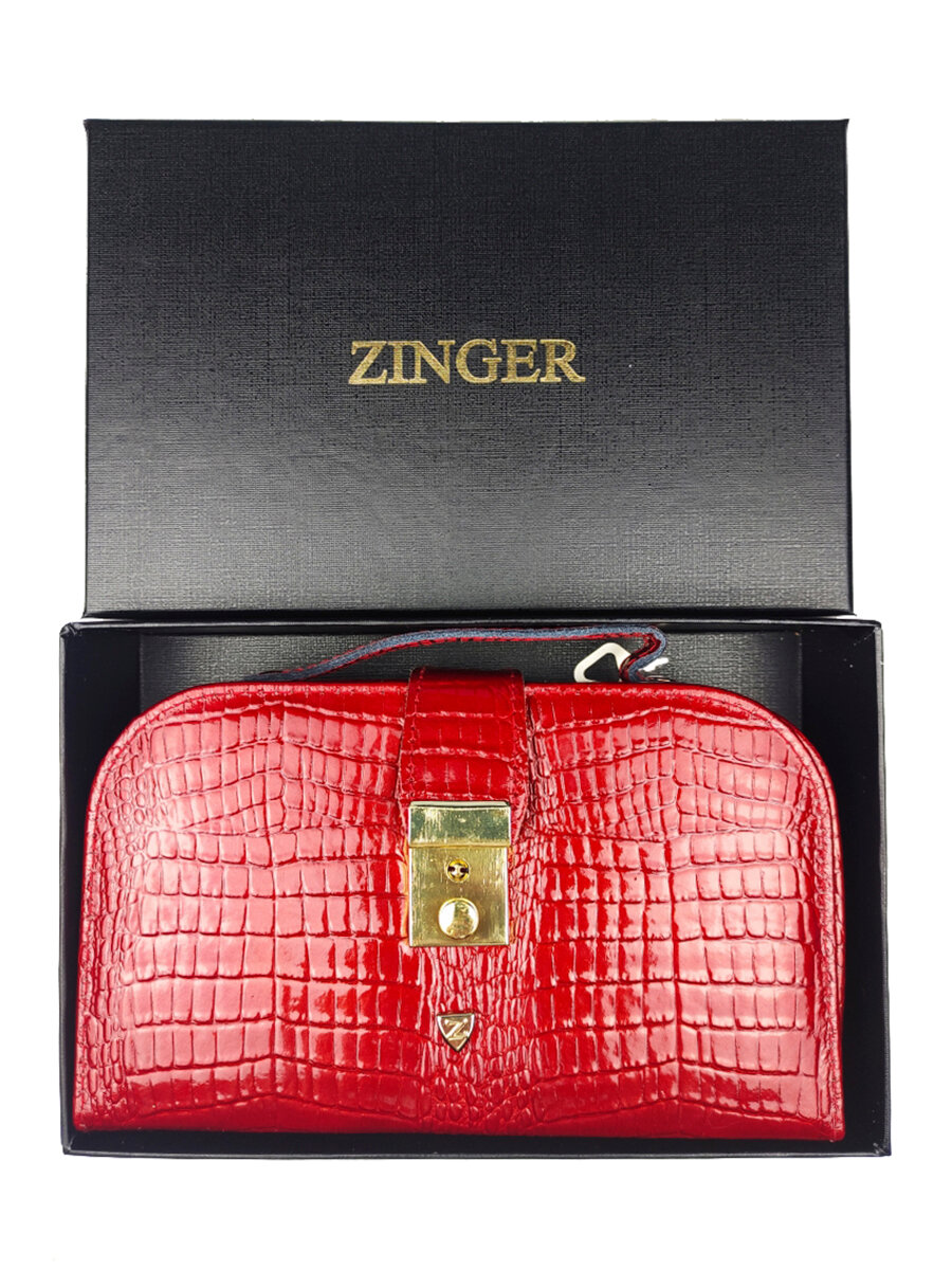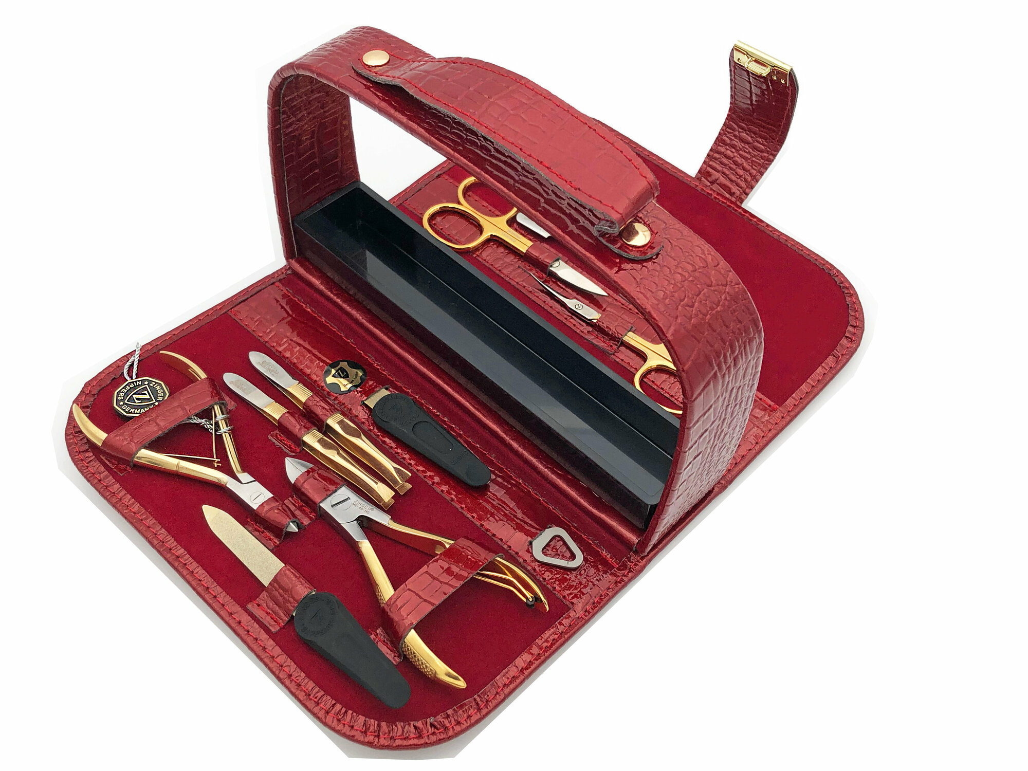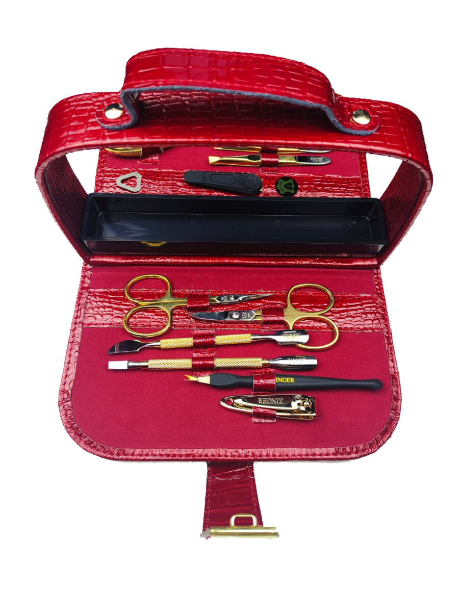 Купить Маникюрный набор Zinger MS-1101-BG, 12 предметов, позолоченный/красный крокодил