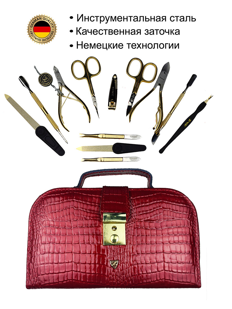 СохранитьМаникюрный набор Zinger MS-1101-BG, 12 предметов, позолоченный/красный крокодил интересное: