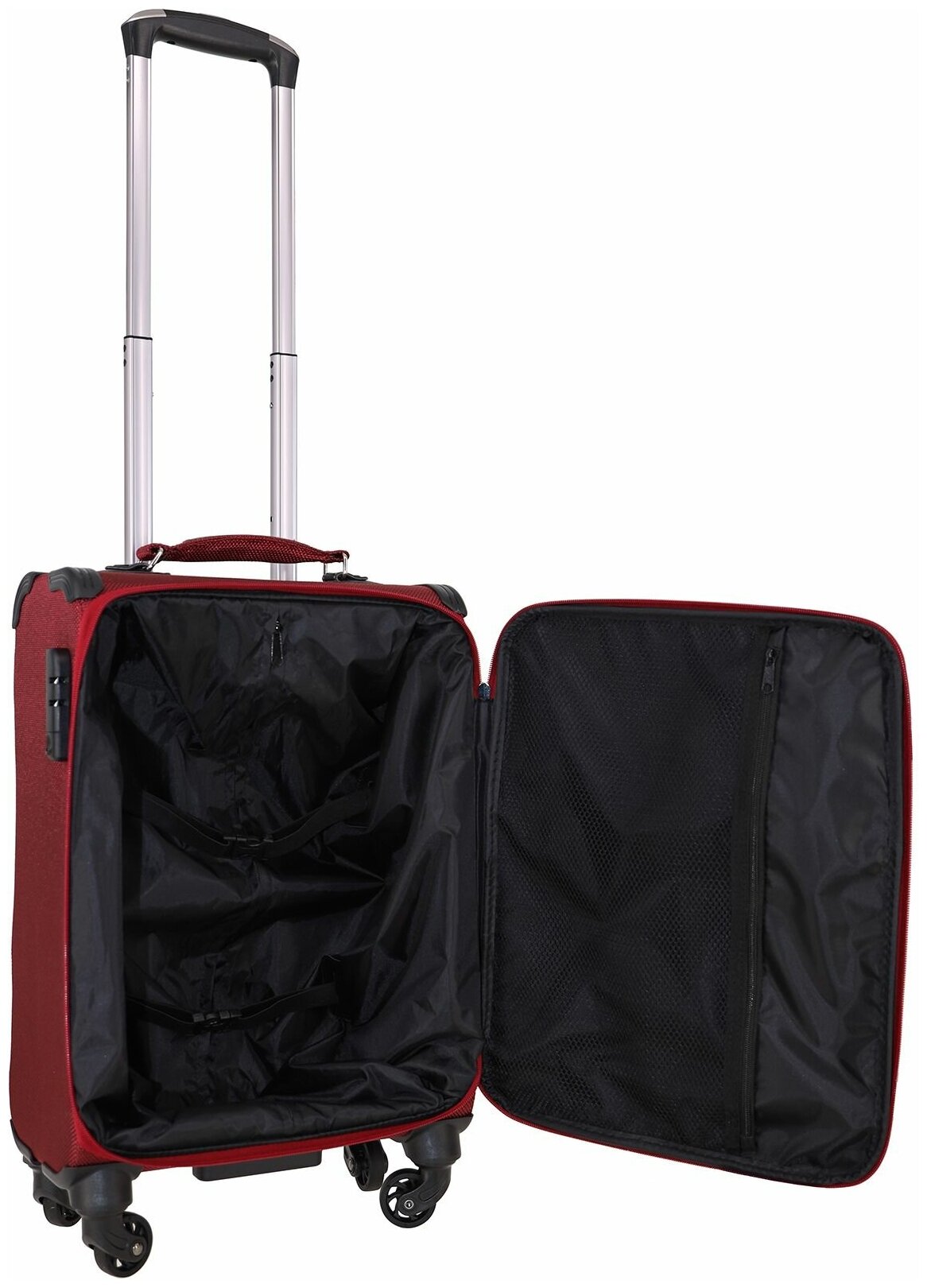 | Дополнительная информация | Выдвижная ручка, Замок, Колеса, Жесткая конструкция, Багажные ремни в главном отделении |