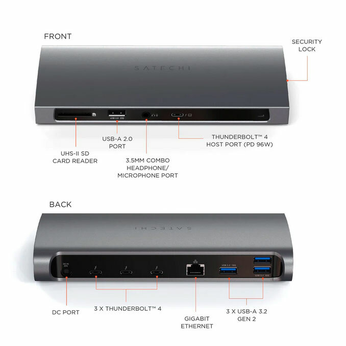 Купить Хаб-разветвитель Satechi Thunderbolt 4 (3шт - Thunderbolt4, 3шт - USB-A 3.2, 3.5мм jack, GbEthernet) серый космос
