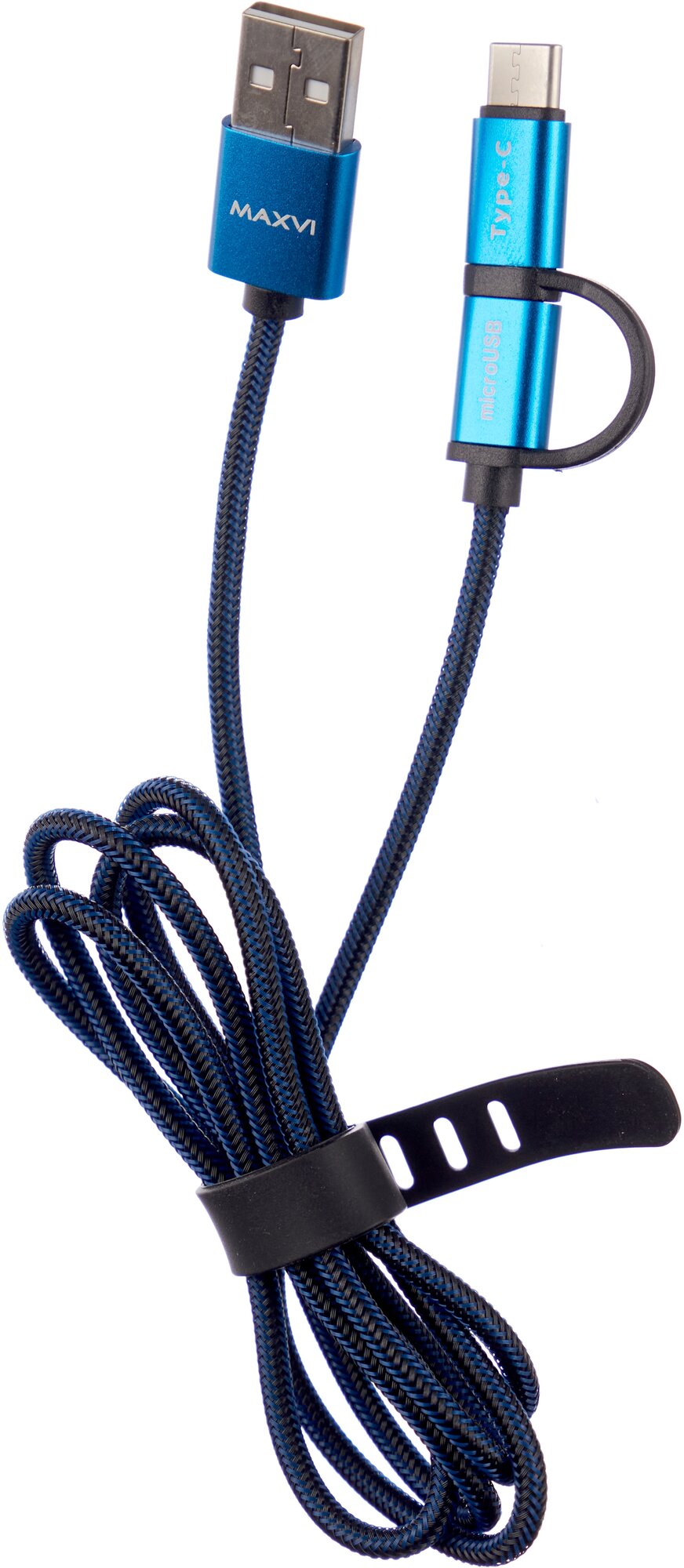 Купить Кабель Maxvi MC-12MT blue, 2 в1, USB-A - microUSB/Type-C, 2A