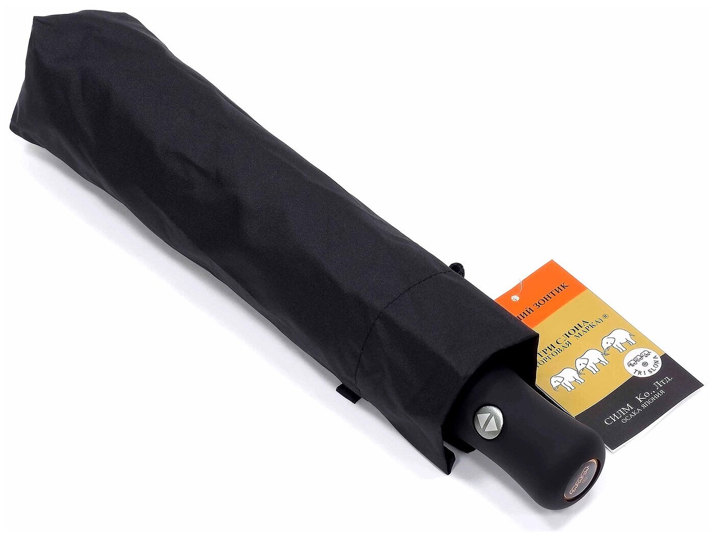 Зонт-шляпка Три слона, автомат, 3 сложения, купол 116 см., 8 спиц, система «антиветер», чехол в комплекте, для мужчин, черный