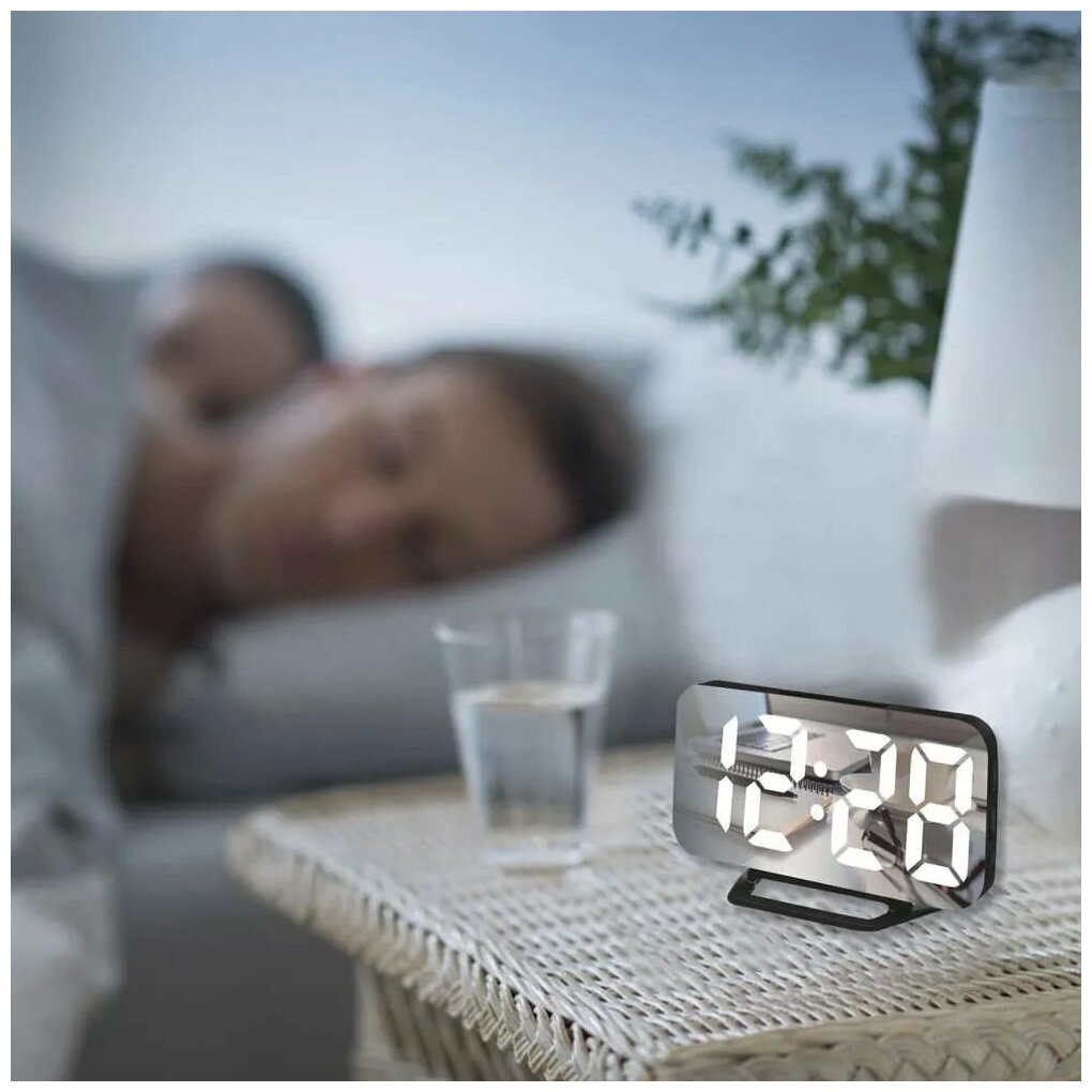 СохранитьЧасы настольные VST/будильник, дата, термометр, зеркальный дисплей, 2 режима яркости / часы электронные DS-3625L/белые цифры интересное: