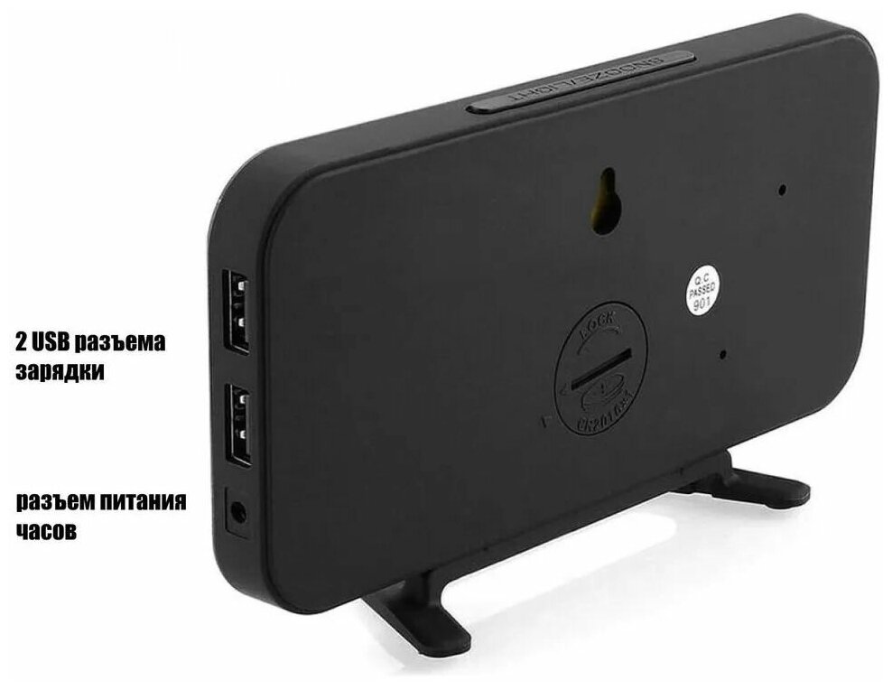 Часы настольные VST/будильник, дата, термометр, зеркальный дисплей, 2 режима яркости / часы электронные DS-3625L/белые цифры