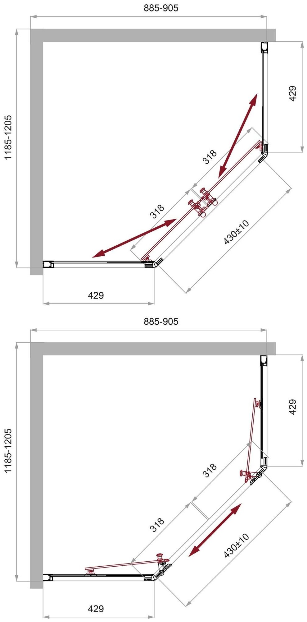 Душевой уголок BELBAGNOUNO-195-PH-2-120/90-C-Cr, стекло прозрачное