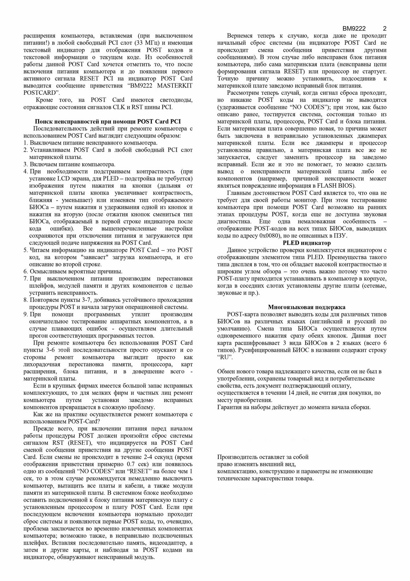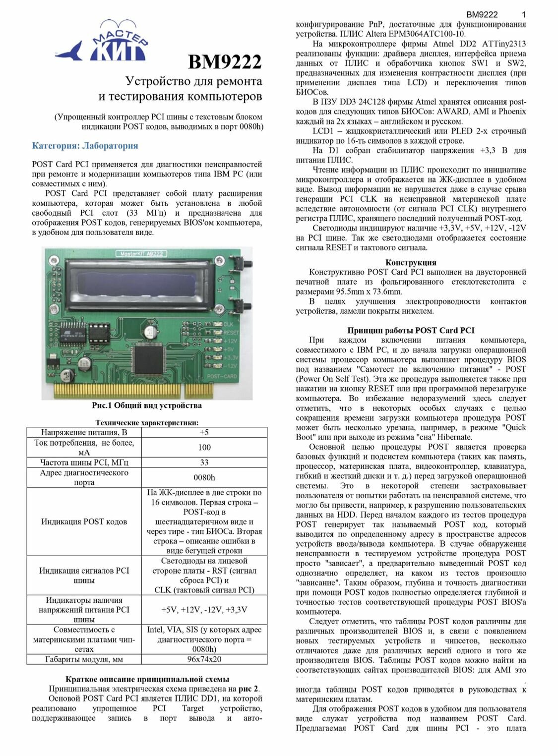 Универсальная POST карта для ремонта ноутбуков и компьютеров, BM9222 Мастер Кит интересное: