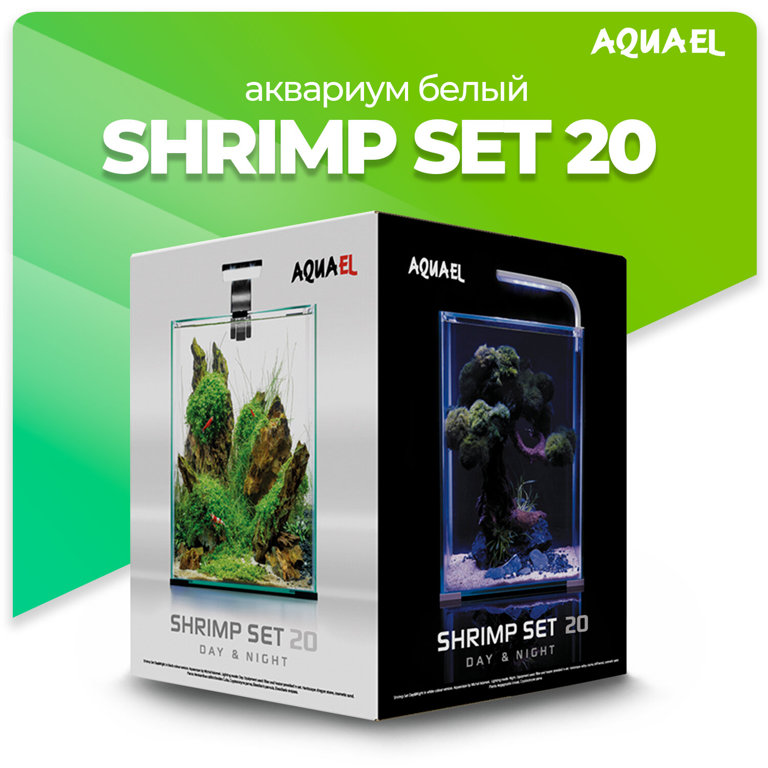 Aквариум AQUAEL SHRIMP SET DAY&NIGHT 20 белый (19 л), с оборудованием интересное: