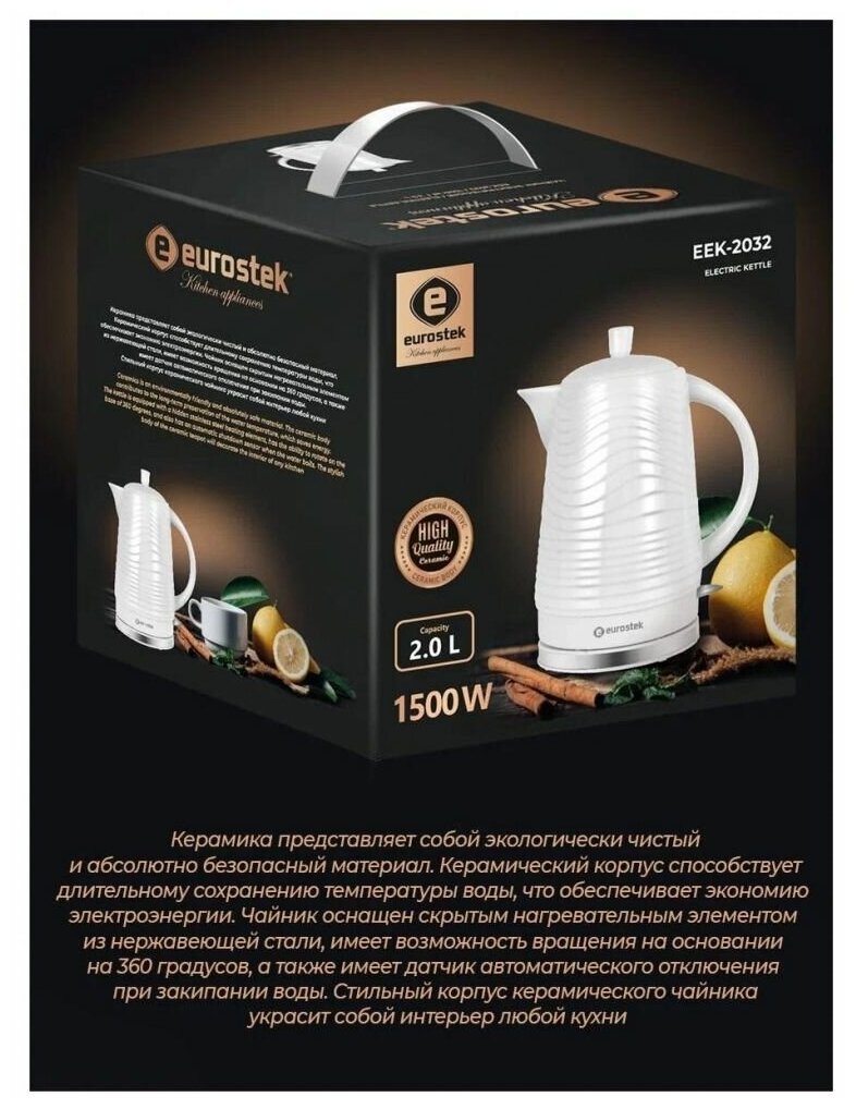 Чайник Eurostek EEK-2032 Белый керамика 1500Вт объем 2,0л
