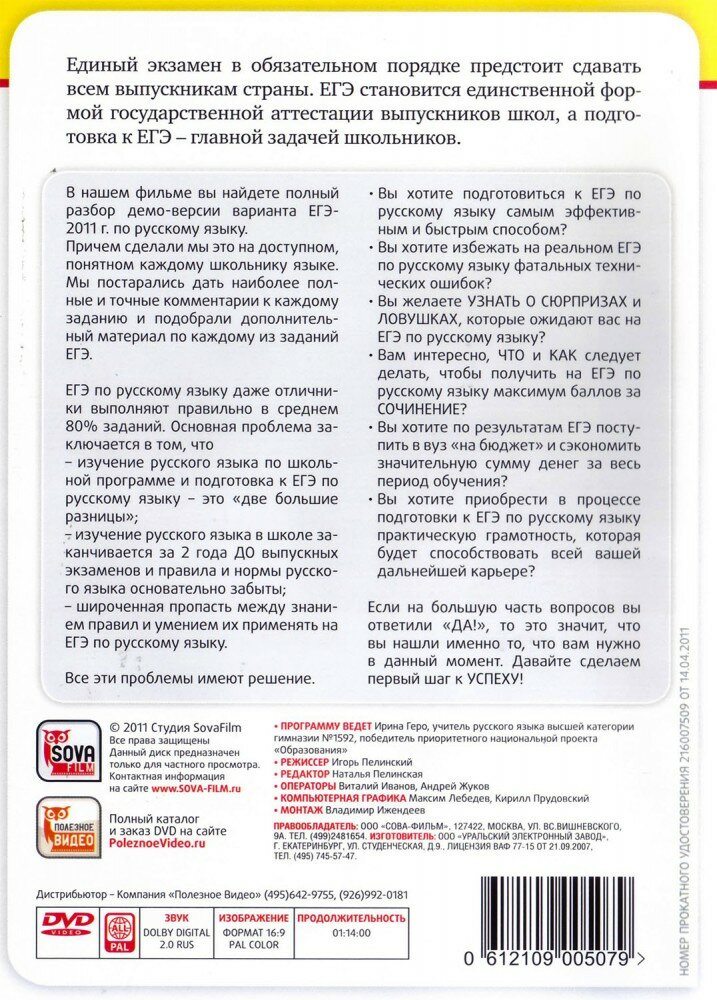 Ниже Вы можете прочитать отзывы на Успешная подготовка к ЕГЭ-2011: русский язык и математика (4 DVD), ознакомится с подробными характеристиками, посмотреть интересные обзоры и фотографии на Успешная подготовка к ЕГЭ-2011: русский язык и математика (4 DVD).