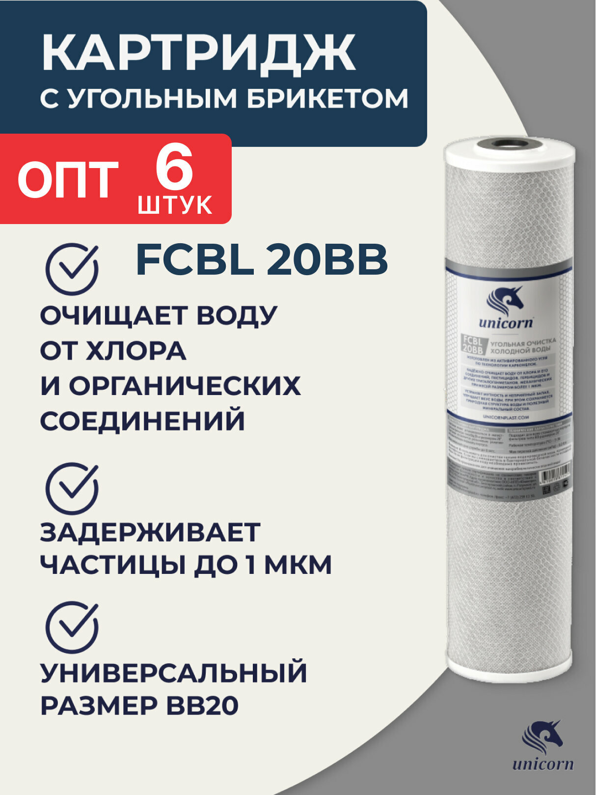 Купить Unicorn FCBLBB20 Картридж из спеченного в блок активированного угля, 1 шт.