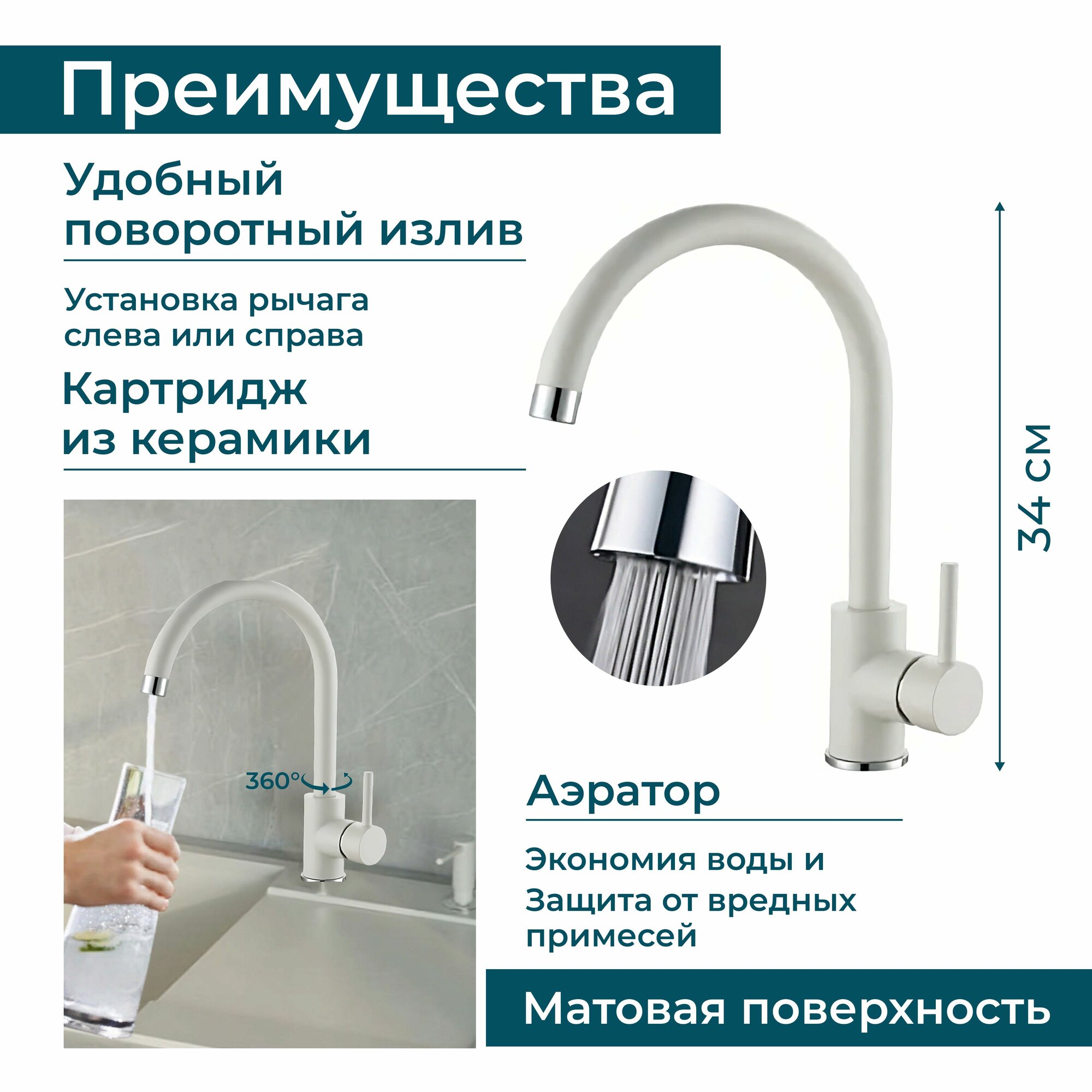 Смеситель для раковины с фильтром и краном для питьевой воды ALVEUS AQUILA G11 поворотный для кухни и ванной. Латунь. Цвет белый матовый