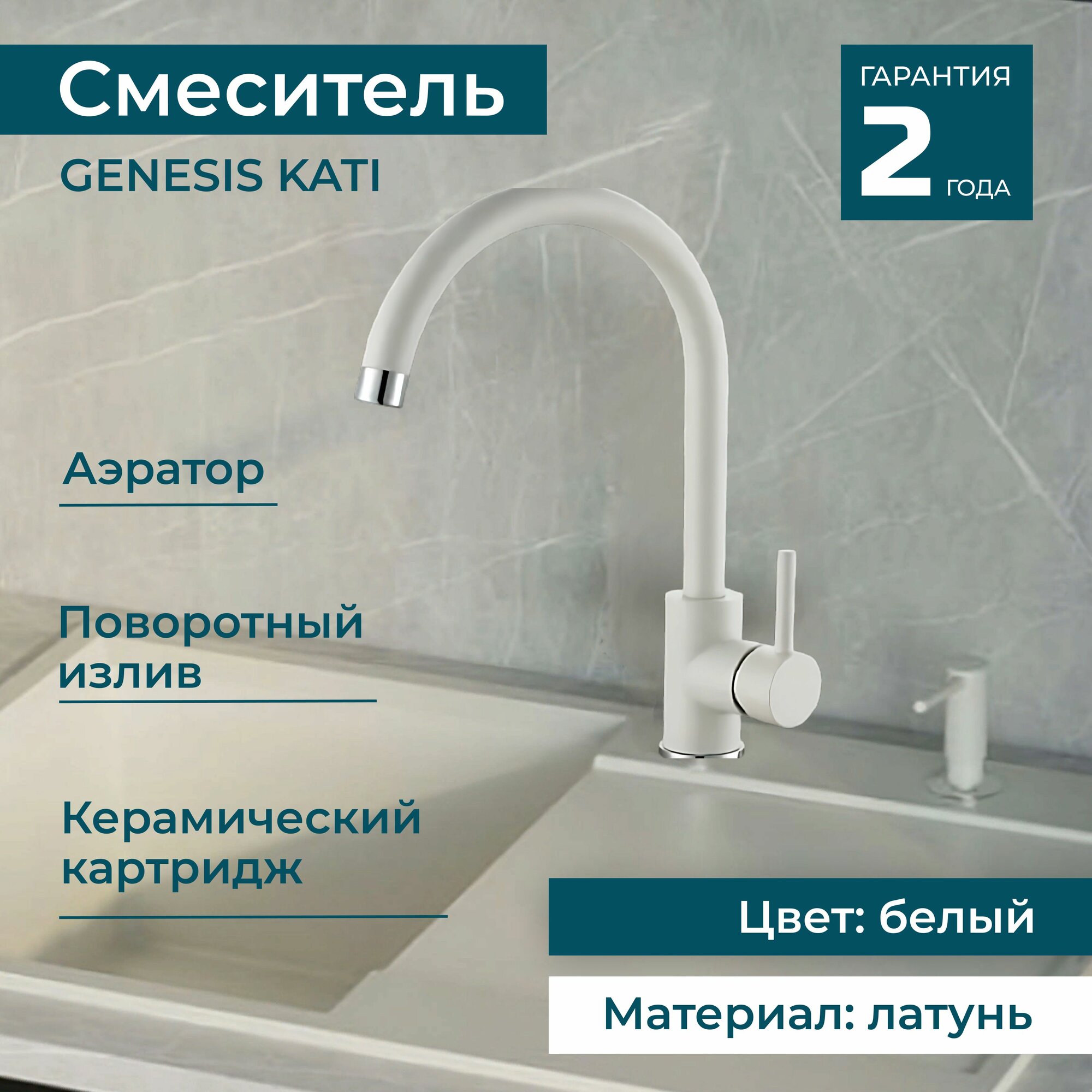 Смеситель кран для раковины для кухни и ванной поворотный ALVEUS GENESIS KATI G11 латунь. Цвет белый матовый