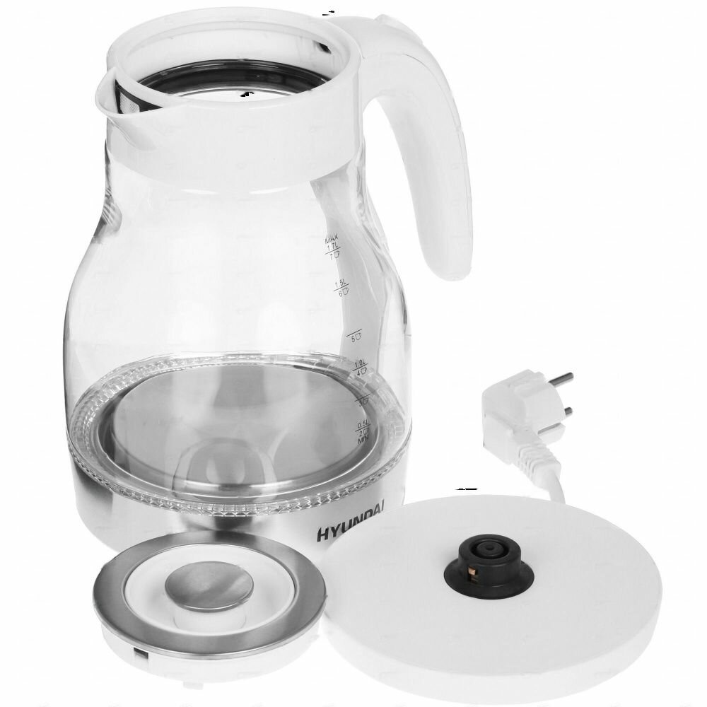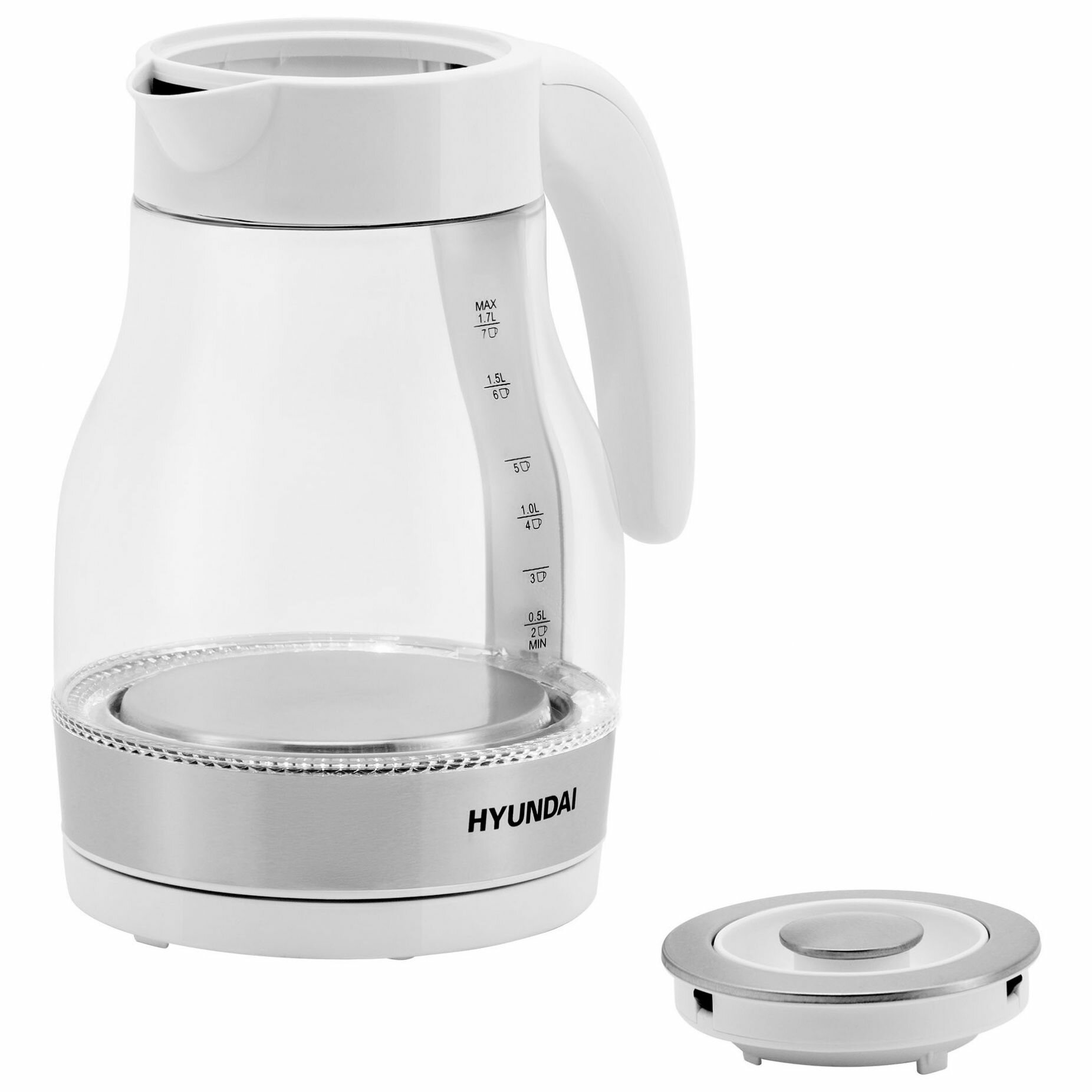 Чайник электрический Hyundai HYK-G3802, 2200Вт, белый и серебристый