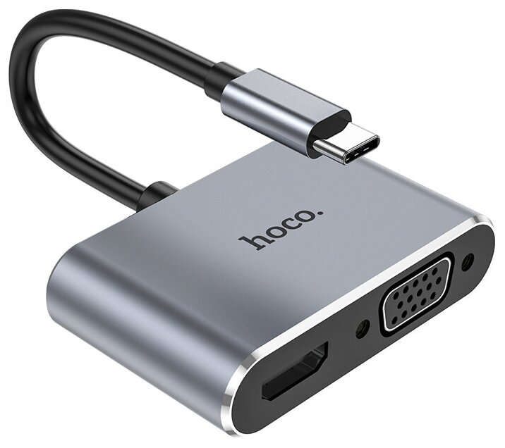 Купить Переходник HOCO HB30 разъем Type-C, HDTV, VGA, USB 3.0, USB-C, серый