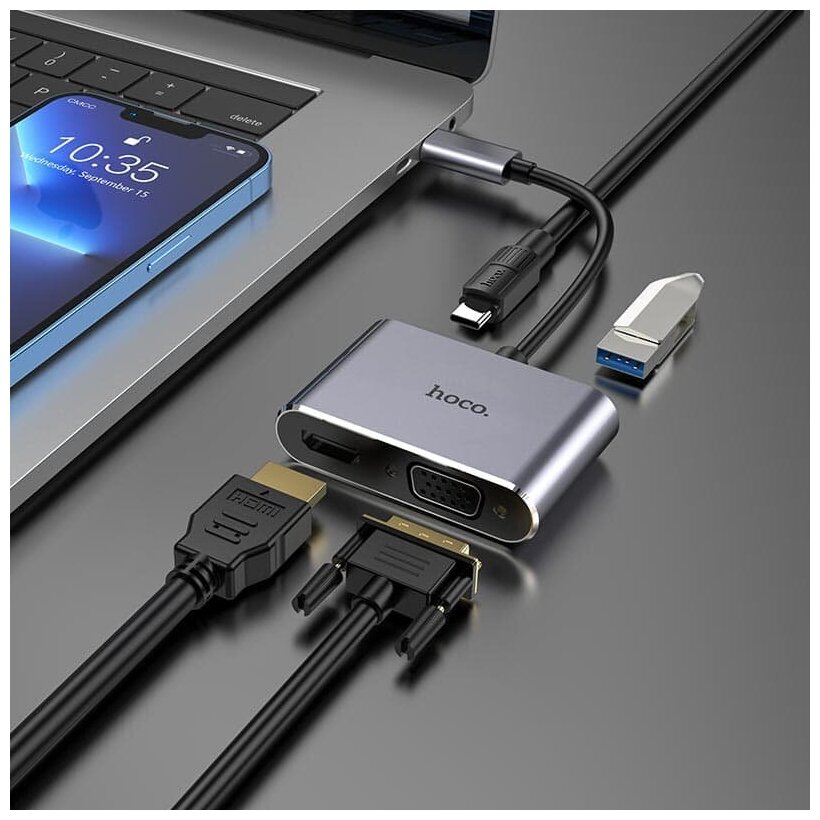 Кабель-переходник Hoco HB30 Type-C на HDMI/USB3.0/VGA/USB-C серый