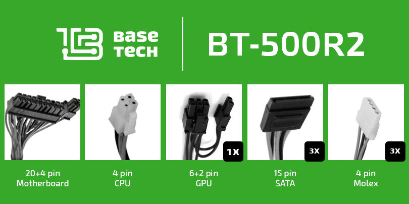 Блок питания 500 Вт ATX BaseTech BT-500R2, 120 мм интересное: