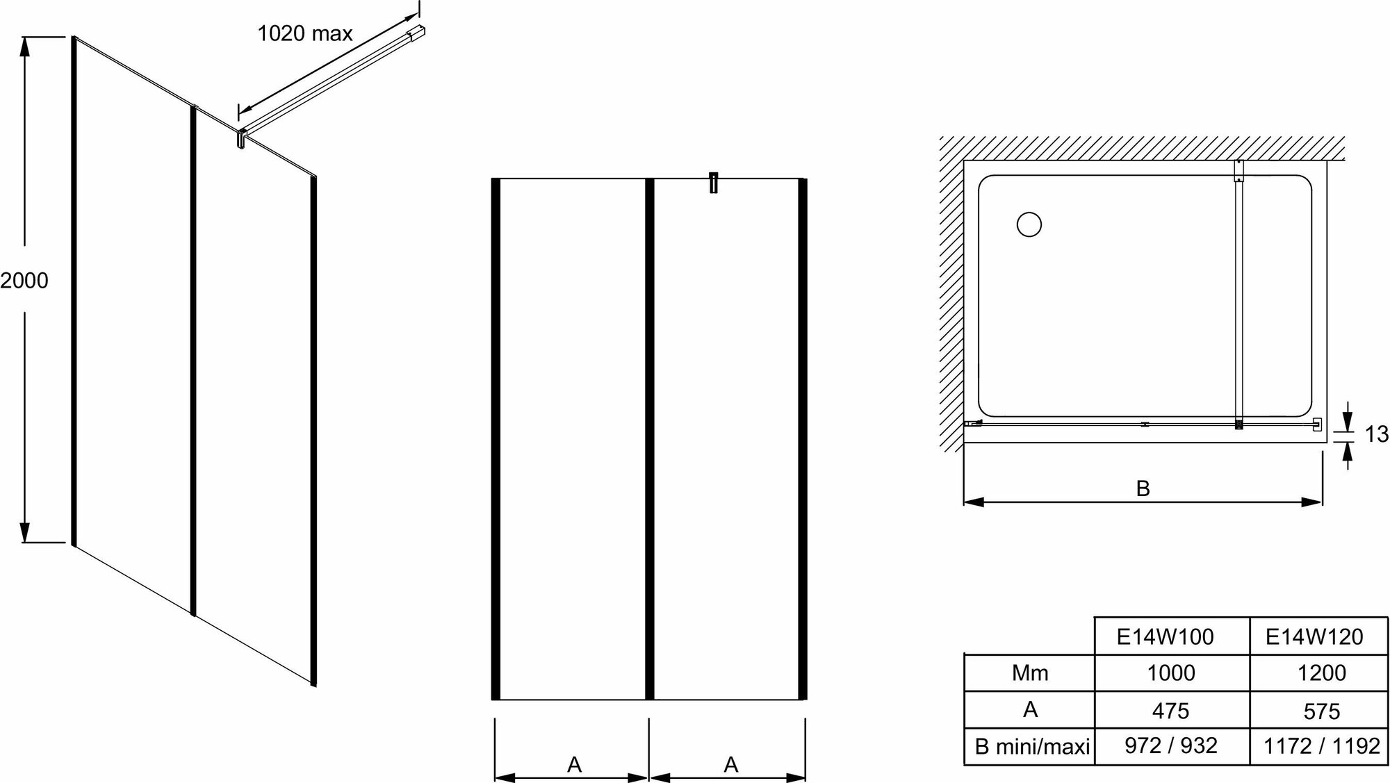 Душевая перегородка Walk-In Jacob Delafon Serenity 120х200см, арт. E14W120-BLV, 6 мм, черный профиль, анти-известковое покрытие