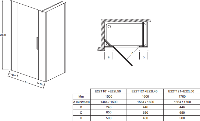 Душевая дверь в нишу Jacob Delafon CONTRA E22T121-GA