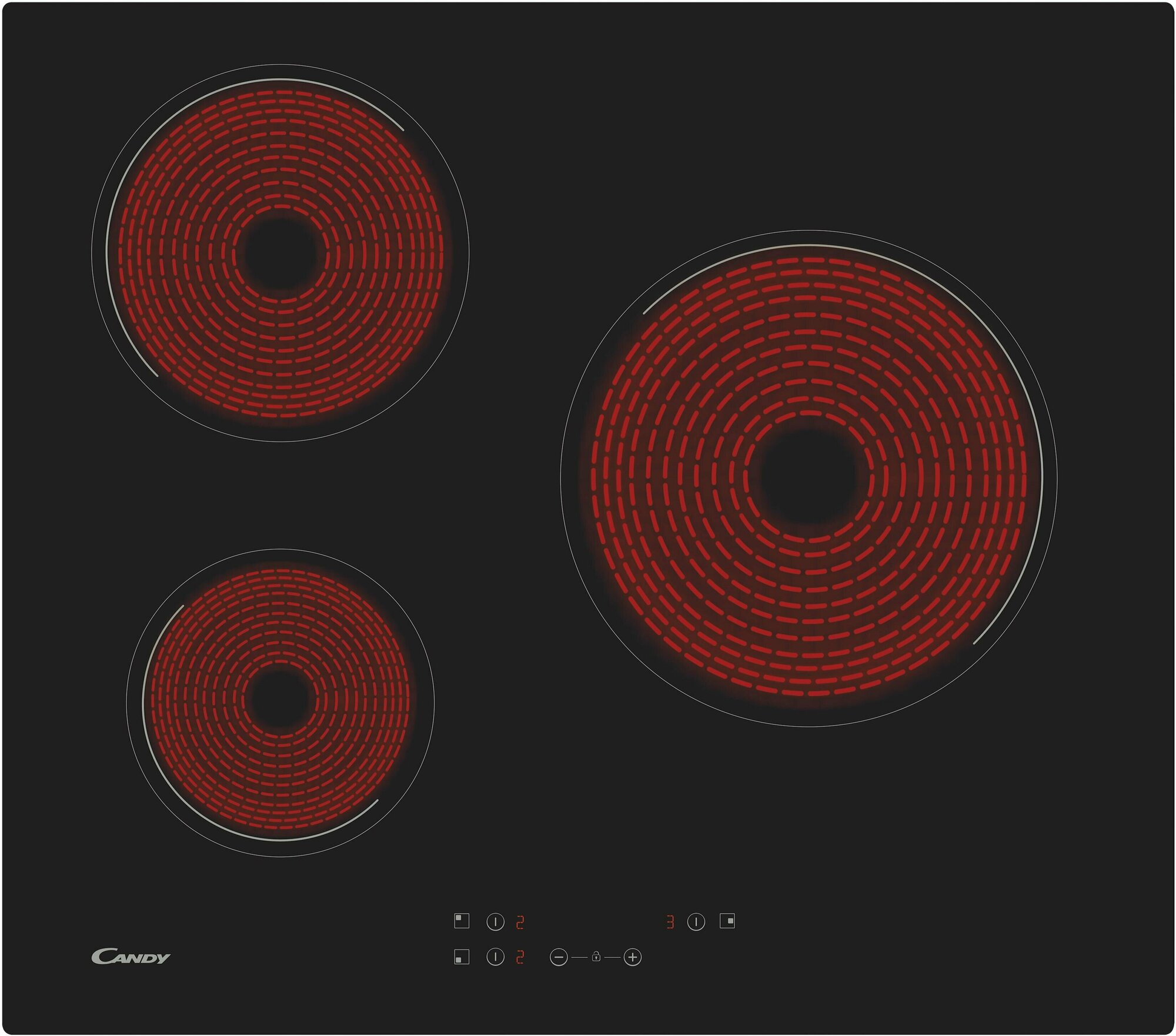 Candy Варочная поверхность Candy CH63CC/4U2, электрическая, 3 конфорки, сенсор, чёрная