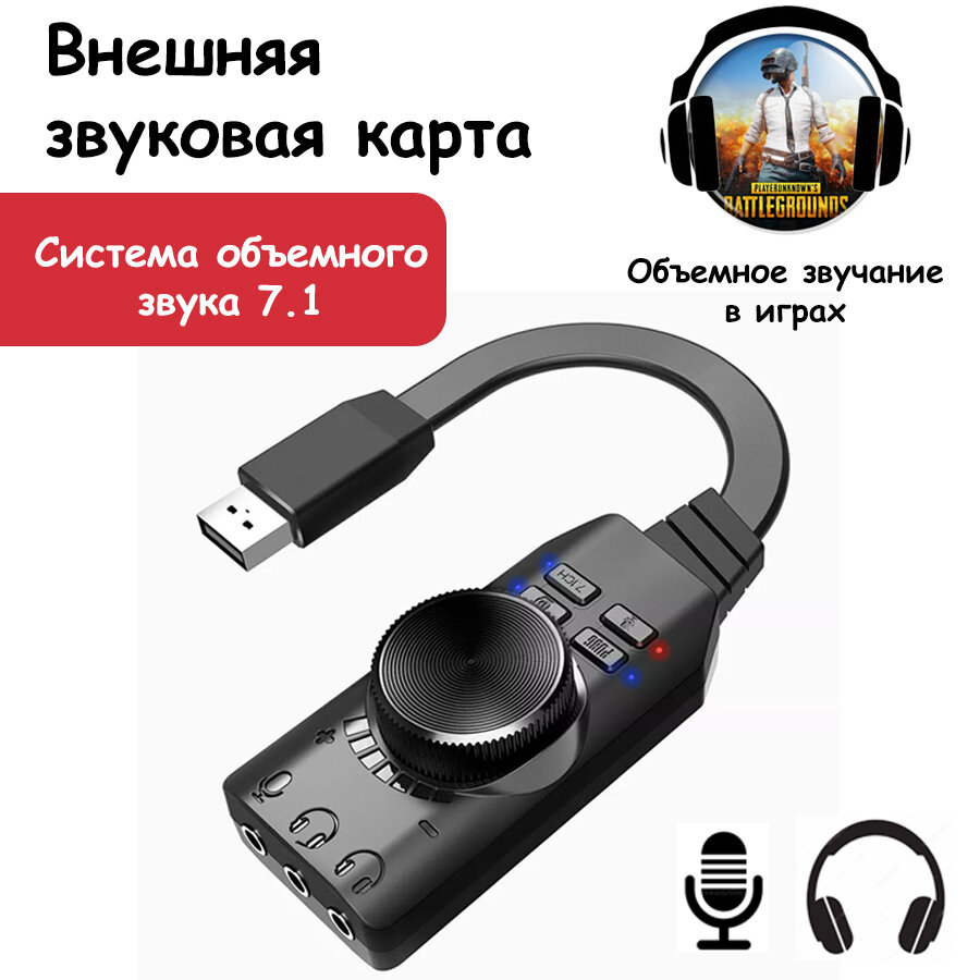 Внешняя звуковая карта usb для компьютера, ноутбука, пк, игровая, объемное звучание 7.1, для музыки. интересное: