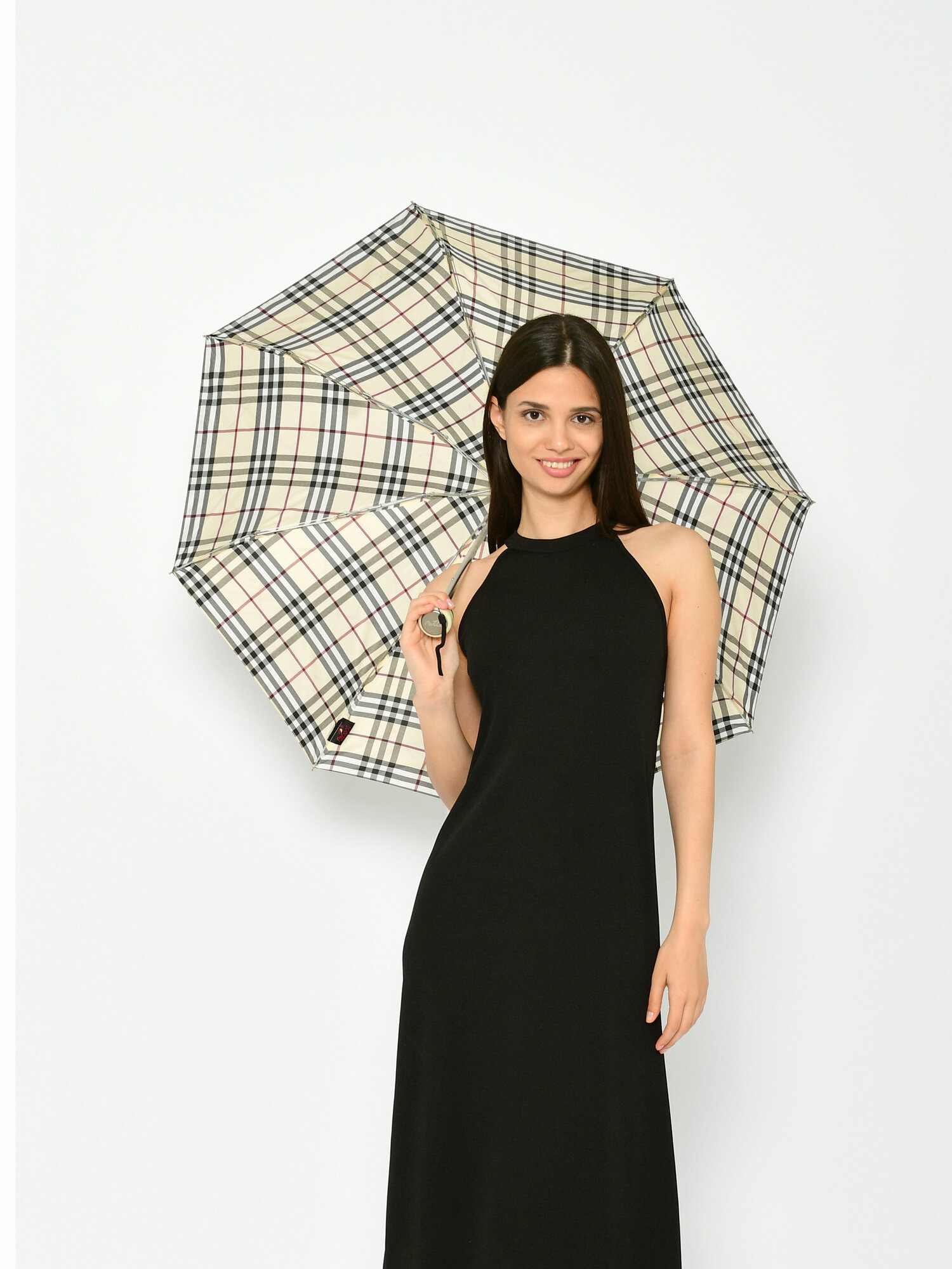 Зонт "Три Слона" женский №310-5, купол D=103 см, 10 спиц, суперавтомат бежево-черный