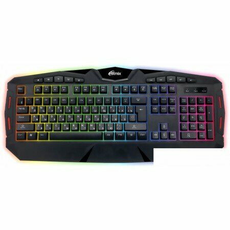 Клавиатура игровая RITMIX RKB-555BL, корп:пласт,Подсв:настр.реж.ярк,Подкл:проводUSB,ткан опл каб,клав:104,мульти:10