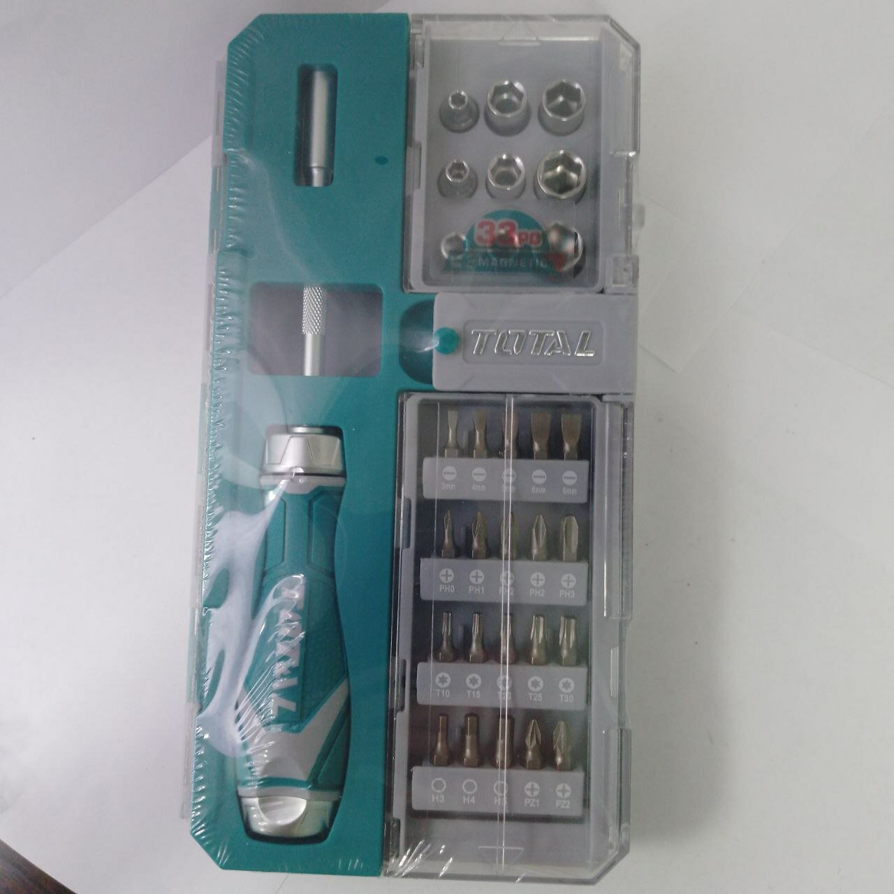 Набор бит и торцевых головок TOTAL TACSD30336 , 33 предм., серый