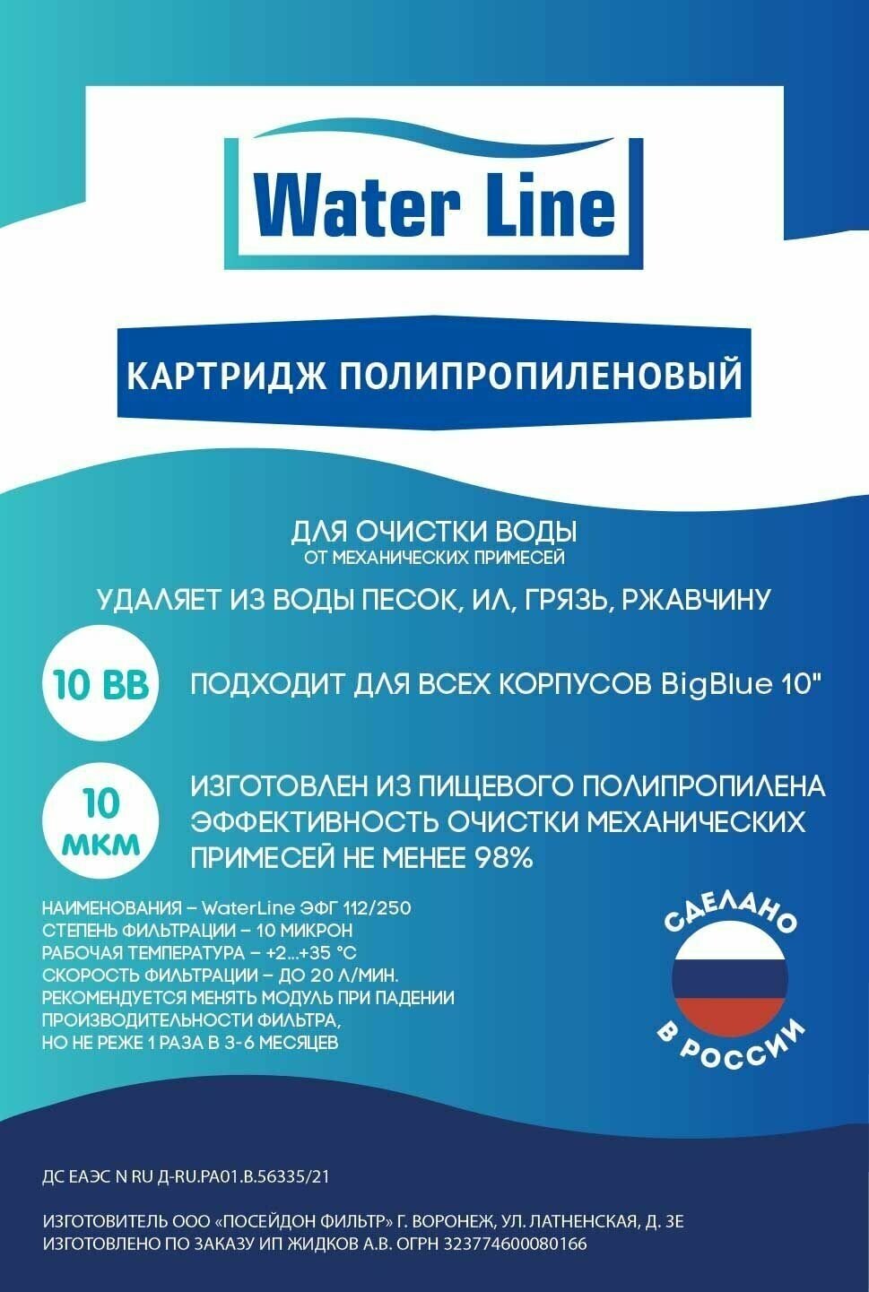| Дополнительная информация | Картридж механической очистки Equation SL10 для холодной воды |