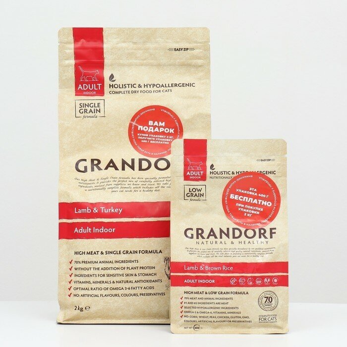 Сухой корм Grandorf для кошек, ягненок/индейка, низкозерновой, 400 г