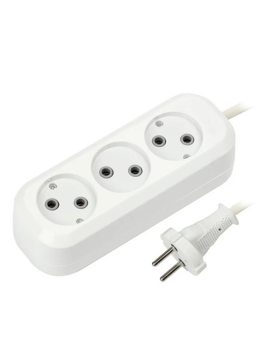 Удлинитель 3 розетки, 5 м, 6 А, 1300 Вт, ШВВП 2х0.5 мм2, без з/к, белый 5350219