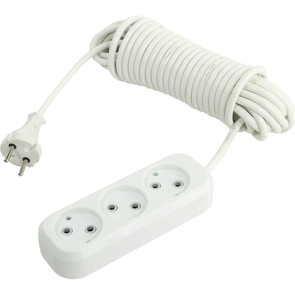 Удлинитель 3 розетки, 10 м, 10 А, 2200 Вт, ПВС 2х1 мм2, без з/к, белый