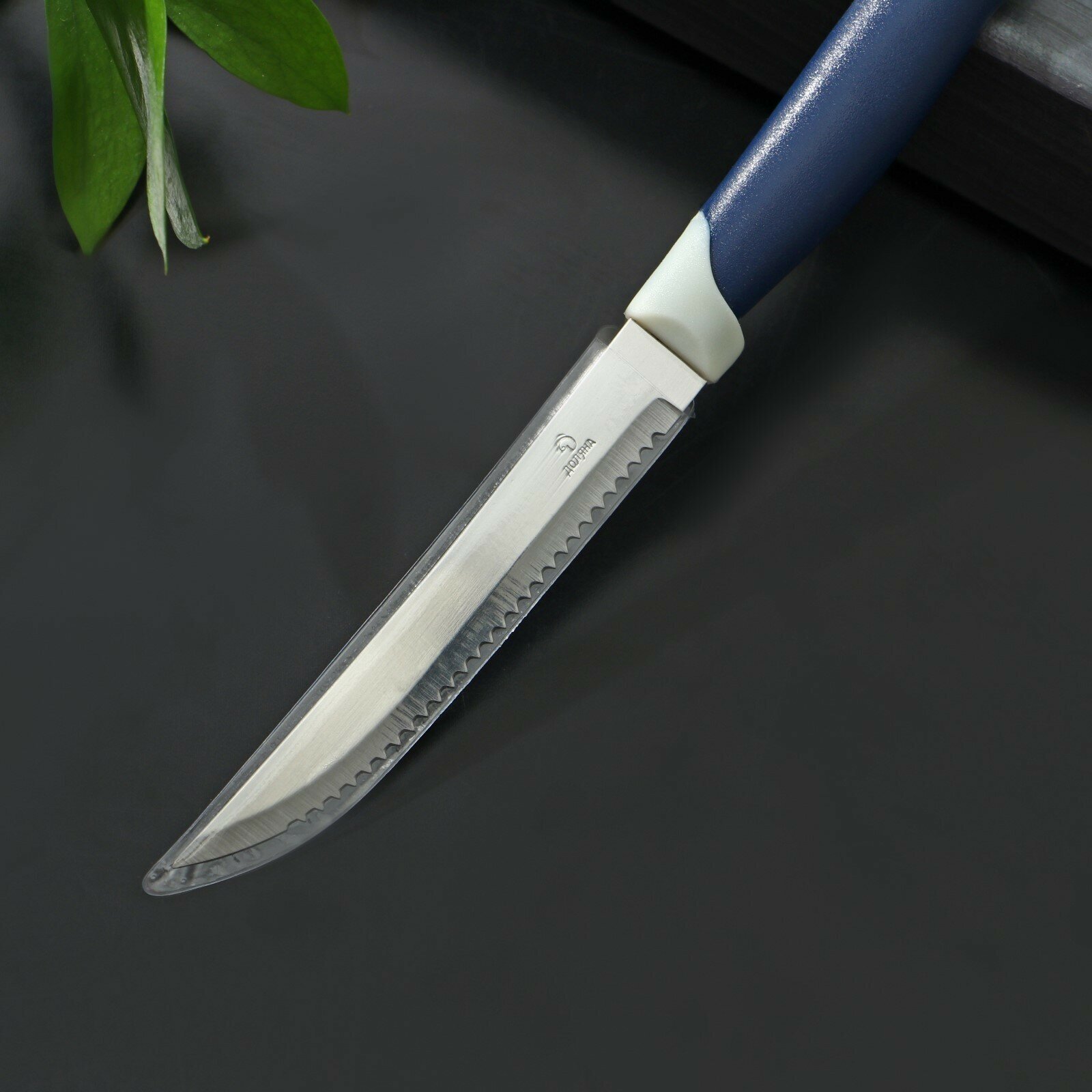 Нож Страйп для мяса, зубчатое лезвие 11,5 см, цвет синий интересное: