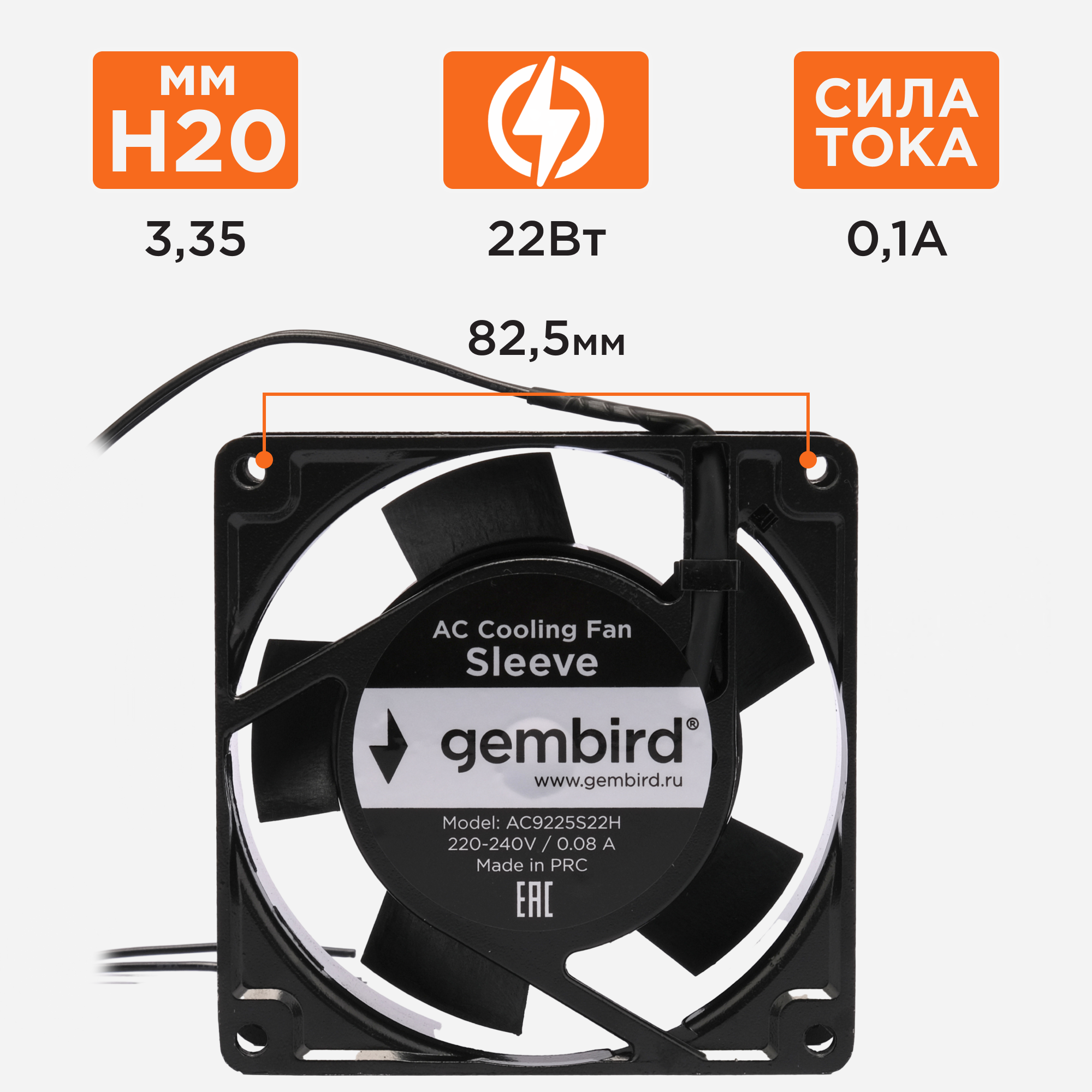 Вентилятор охлаждения Gembird, 92x92x25, AC, 220, втулка, 2 pin, провод 30 см интересное: