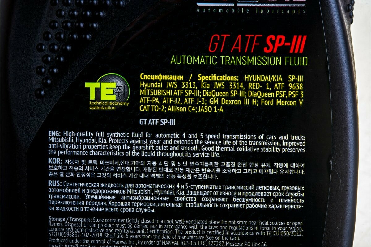 GT OIL масло gt atf sp iii, 4 л 8809059409800 .