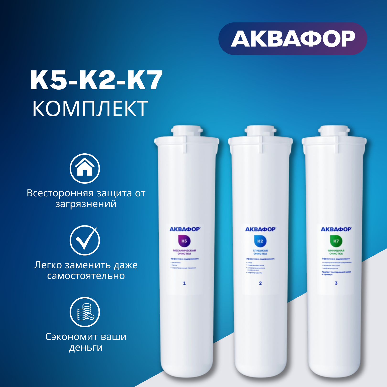 Комплект сменных картриджей Аквафор К5-К2-К7 для фильтра Аквафор Кристалл А