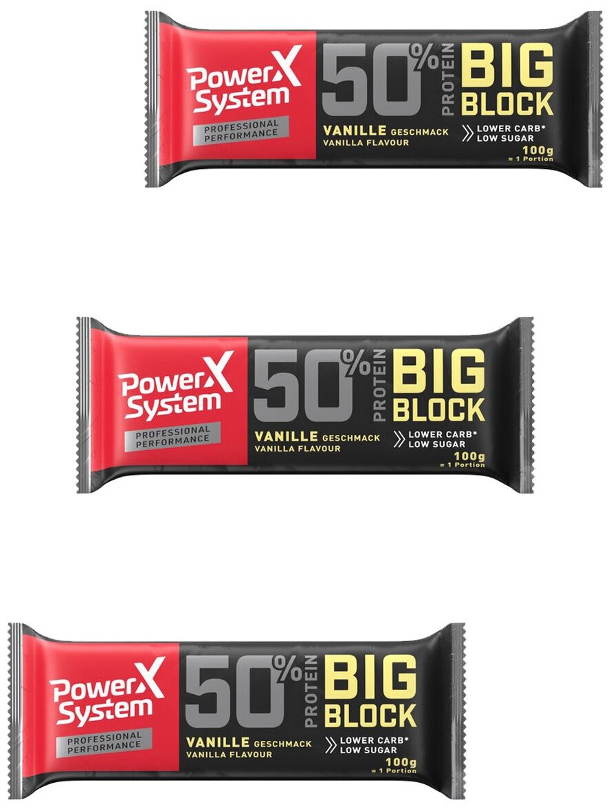 Купить Протеиновый батончик с 50г белка / Power System Big Block Protein Bar (Ваниль) 3х100г / 50% белка с коллагеном для похудения и набора мышечной массы женщин и мужчин