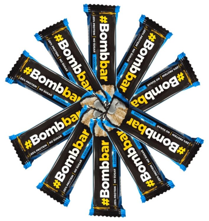 Bombbar Протеиновый батончик в шоколаде без сахара, набор 10x40г (кокосовый торт) / Бомбар protein bar состав польза для похудения