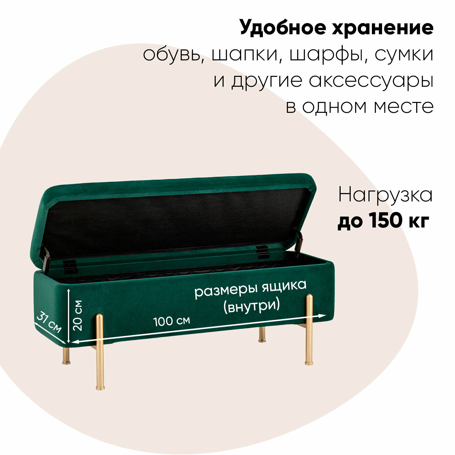 СохранитьБанкетка Болейн с ящиком, велюр зеленый интересное:
