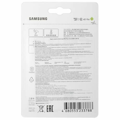 Карта памяти micro SDXC 128Gb Samsung PRO Plus U3 A2 V30 180/130MB/s (MB-MD128G-K)