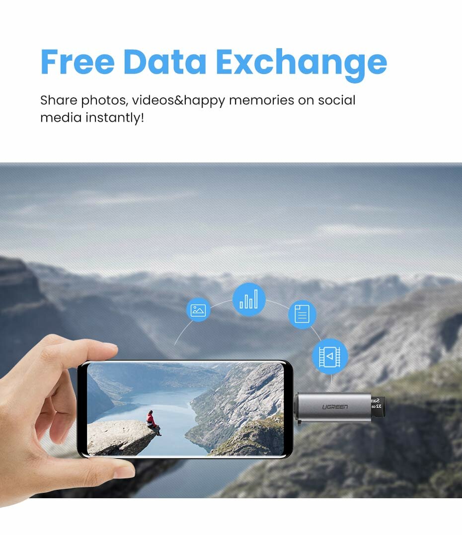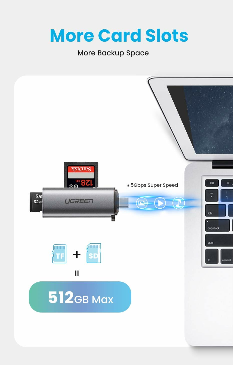 Кардридер UGREEN CM184 (50704) USB-C TF + SD Card Reader. Цвет: серый интересное: