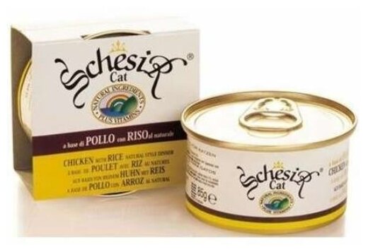 Влажный корм для кошек Schesir с цыпленком, с рисом 85 г в собственном соку