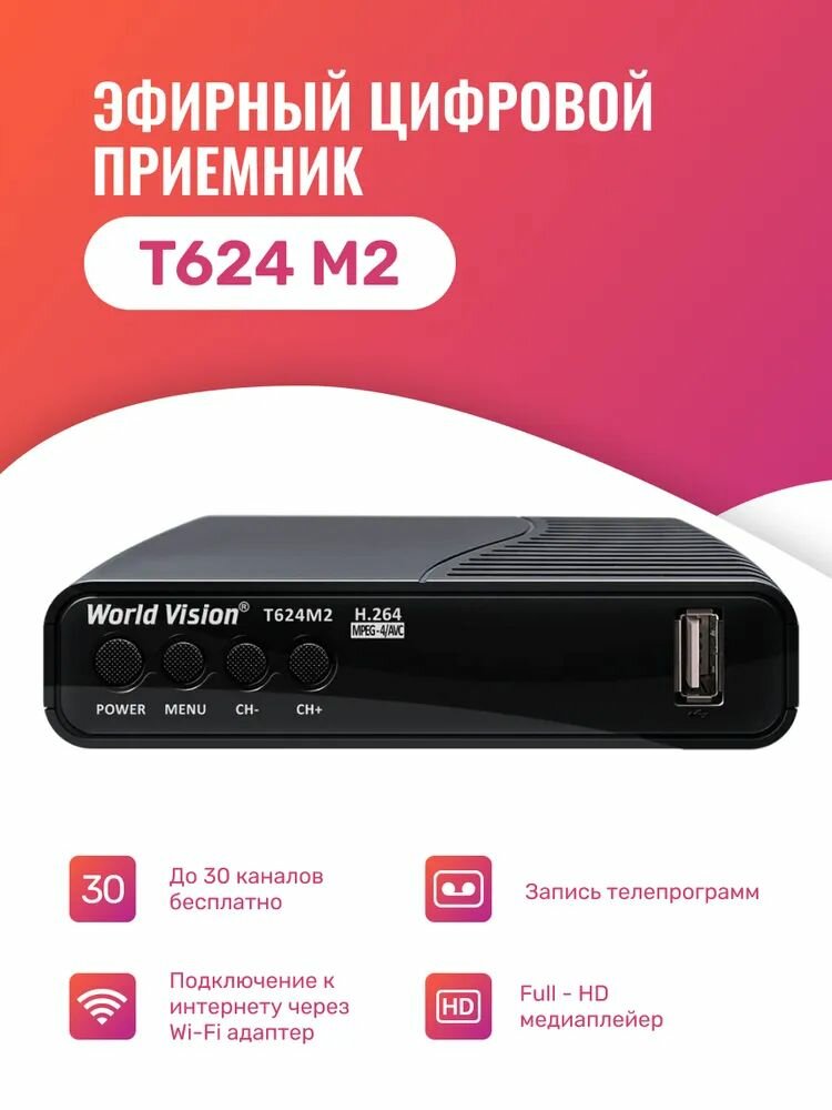ТВ ресивер World Vision T624 M2 , черный интересное: