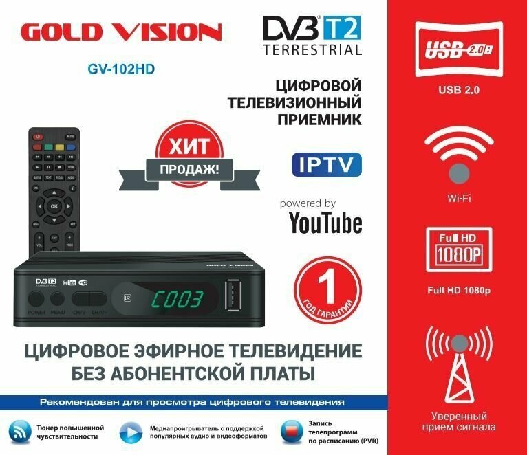 ТВ ресивер GOLD VISION DVB-T2 GV-102HD интересное: