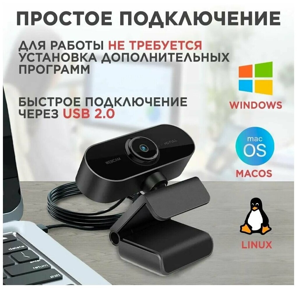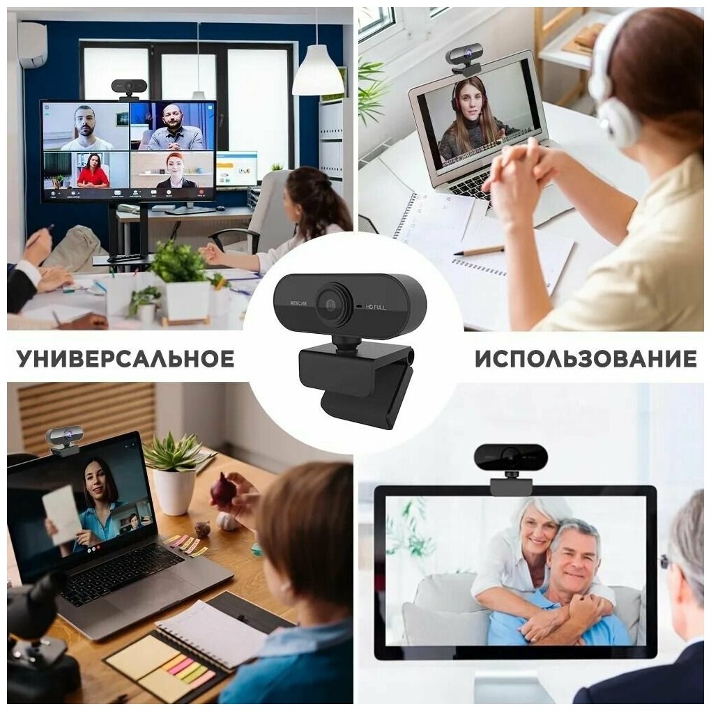 Веб Камера FullHD 1080p для компьютера, с микрофоном / web camera / вебка (Black) интересное: