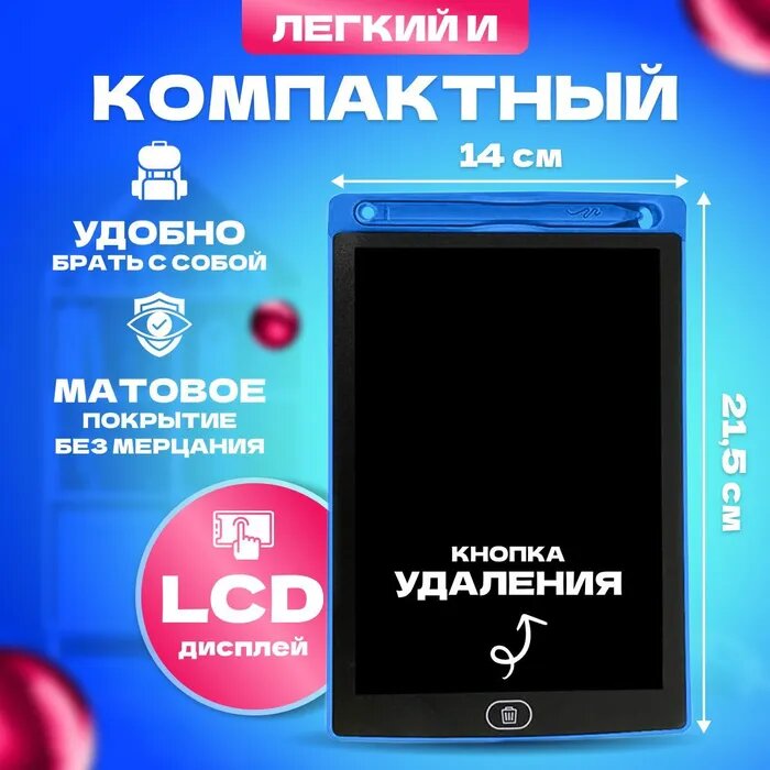 | Отзыв: | Первый планшет был куплен ребёнку, второй - на работу. Удобно делать заметки на срочные задачи или расчёты, вместо кучи бумажек. Пользоваться удобно, одним нажатием кнопки всё стирается (краска с кнопки стёрлась за месяц). На экране можно рисовать хоть ногтем, так что стоит учитывать, что могут оставаться следы даже от нажатия рукой (исчезают с нажатием кнопки). |