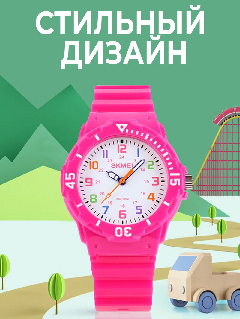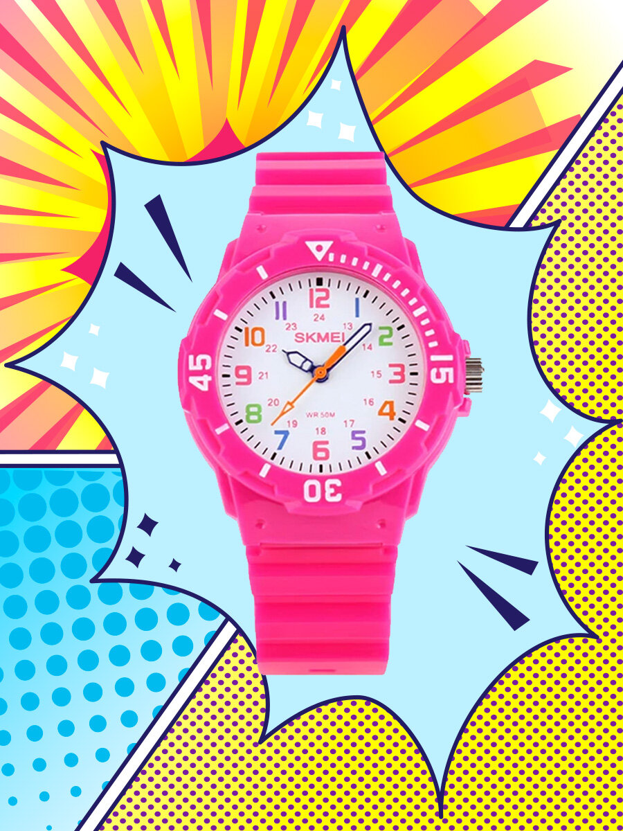Часы Skmei/Скмей 1043, детские, водонепроницаемые Розовые интересное: