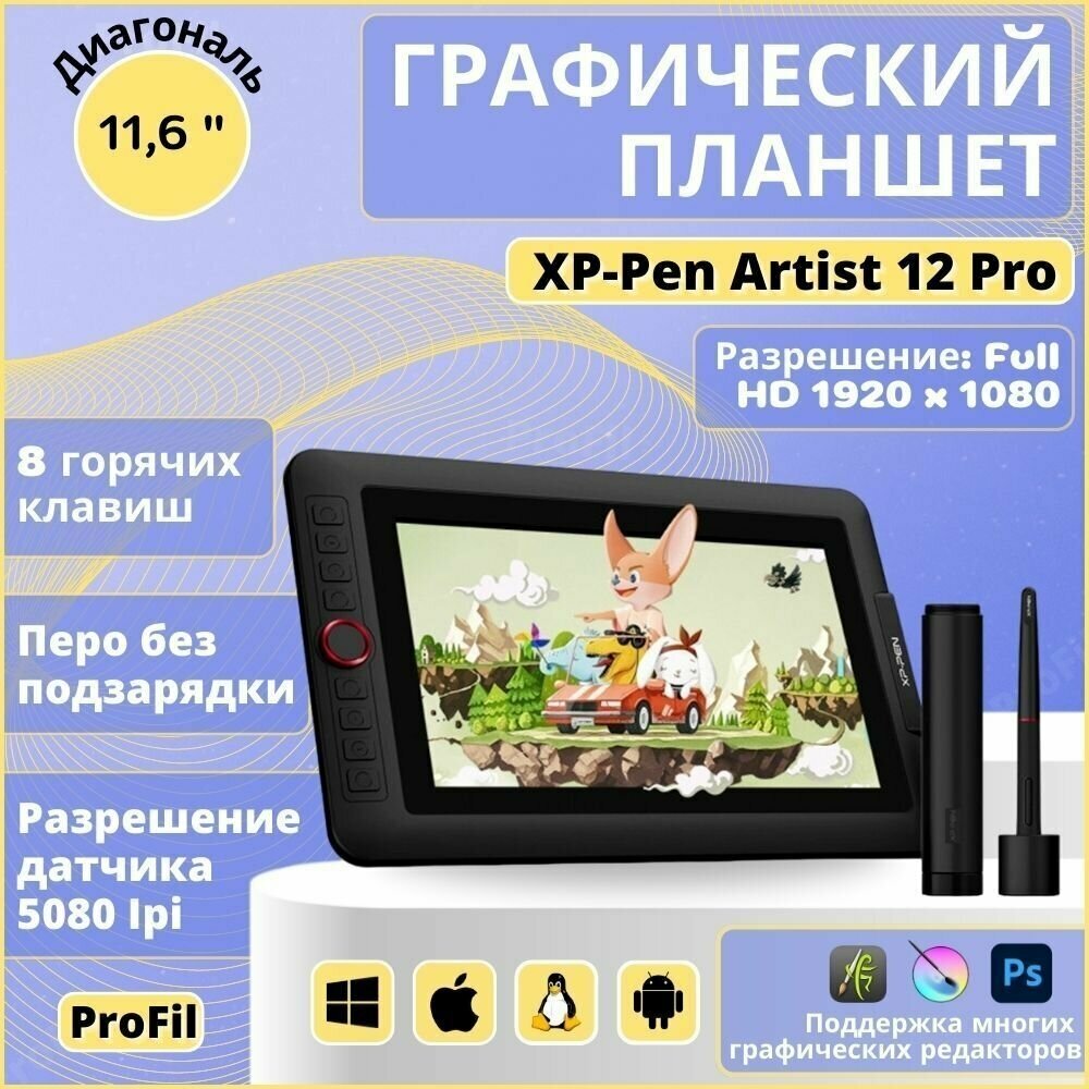 Графический планшет XPPen Artist 12 PRO, 11.6 черный планшет для рисования интересное:
